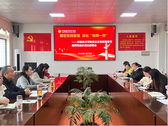 为全面压实寒假期间师生安全与成长双线责任,推动党建工作与教育教学、学生管理双向融合,2026年1月19日,检验技术学院党总支召开“每周一思”党日活动暨寒假工作部署会。党总支书记叶桦主持会议并作部署,全体党员教师参会。