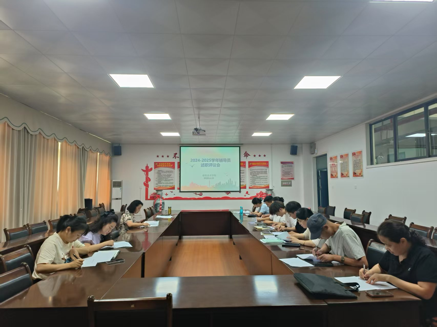 按照学生处安排部署,6月23日,检验技术学院召开2024-2025学年度辅导员工作考核述职评议会。学院党总支书记叶桦、辅导员考核工作领导小组成员、全体辅导员班主任参加会议。